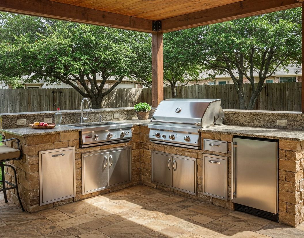 We construct outdoor kitchens for Houston yards, designed for cooking and gatherings, suited to local conditions.